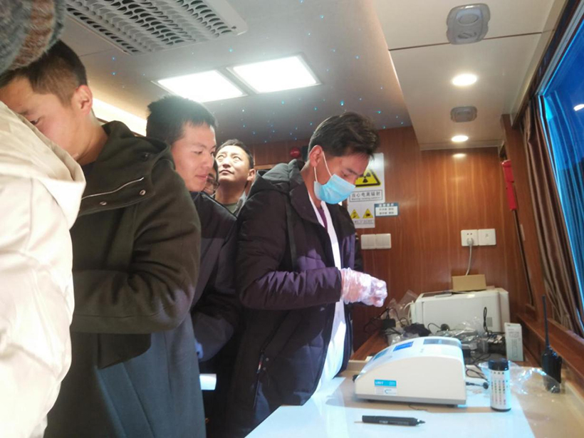 我院高度重視此次公益活動,組成15人義診巡回醫(yī)療服務(wù)隊,委派體檢車輛2輛,攜帶彩超1臺、血糖儀2部、血氧飽和度檢測儀各2部及聽診器等醫(yī)療設(shè)備對日喀則市教育局進(jìn)行免費義診活動。主要義診內(nèi)容包括:內(nèi)科常規(guī)檢查、外科常規(guī)檢查、胸部正位片、肝膽脾胰彩超、雙腎輸尿管彩超、子宮附件彩超、前列腺彩超、尿常規(guī)、血常規(guī)、腎功能、血脂四項、心電圖、血壓監(jiān)測、心肺聽診、血糖檢測、血氧飽和度等并建立健康檔案。