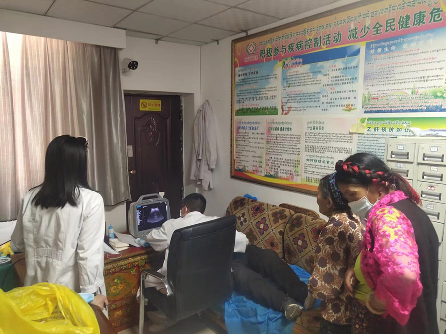 當日上午,日喀則市西華醫院醫護人員在切娃鄉黨委協助下,將體檢設備帶到各村村委會,為群眾進行義務健康體檢。體檢項目包括B超、心電圖、血常規、尿常規、肝腎功能、血糖、血脂和血壓等。體檢過程中,醫生們向群眾耐心地講解飲食起居方面注意事項與養生保健知識,解答常見病、多發病的預防診治等問題,努力推動農牧民群眾們實現“無病早預防、有病早治療、健康有保障”。