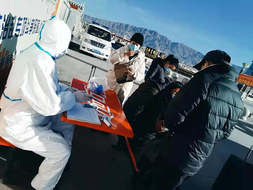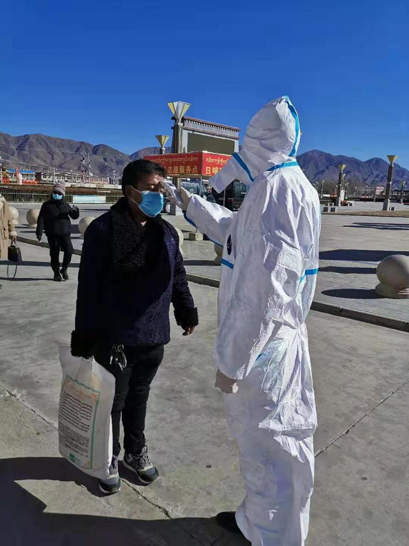 日喀則市西華醫院齊心協力為做好新型冠狀病毒疫情防控工作,為日喀則市火車站疫情防控監測體溫工作。